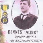 Albert BENNES sera «tué à l’ennemi, touché par des éclats d’obus » dans la nuit du 31 octobre au 1er novembre dans sa tranchée en bordure du canal de l’Yser.