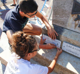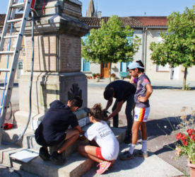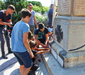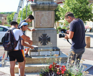 Lors du chantier d’été 2017, chaque jeune présent a pu intervenir, sous la direction de monsieur Boutin, et découvrir ainsi les techniques d’aérogommage. Ils ont également participé à la réfection des plaques commémoratives (lettrage).